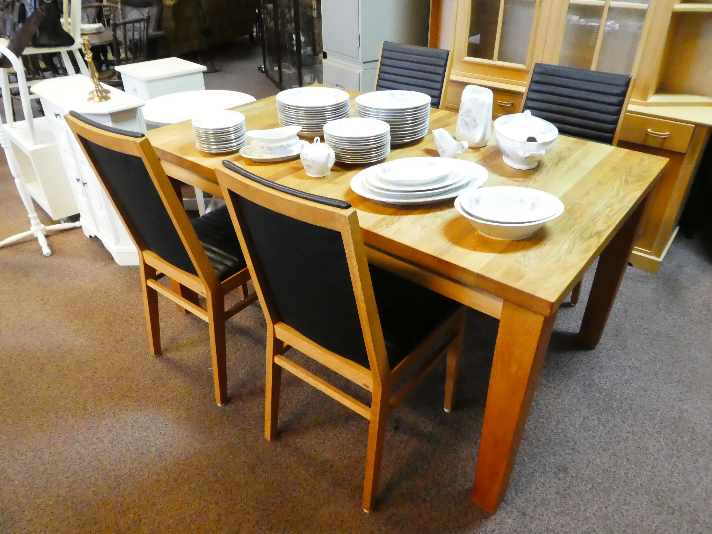 49. Matgrupp G.A.D. ljus ek bord 4 skinnklädda stolar