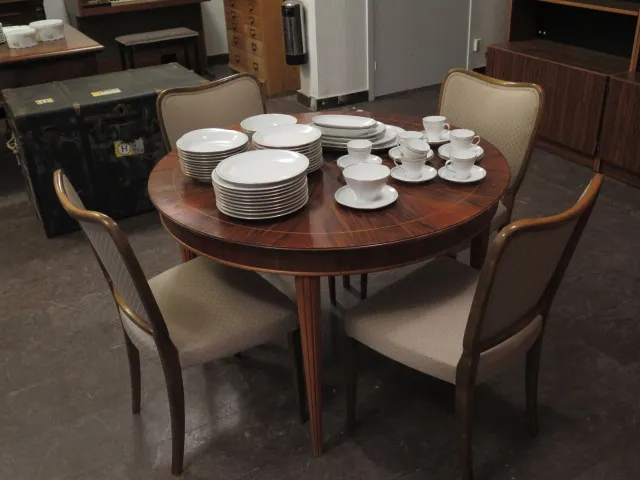 Matsalsgrupp 50-talet.. bord d-110 cm 4 stolar