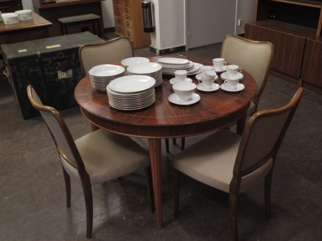 16. Matsalsgrupp 50-talet.. bord d-110 cm 4 stolar