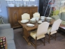 608. Matsalsgrupp Chippendale bord 4 stolar rikt skuret porslinsskåp
