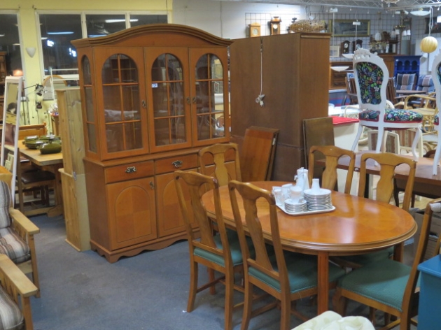 Matsalsgrupp porslinskåp spröjsat vitrin bord 2 ilägg 6 stolar