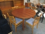 533. Matsalsgrupp teak 60-tal bord 1 ilägg 4 stolar d:110 cm