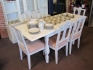 Matsalsgrupp vitmålat antikt bord 3 ilägg 6 stolar