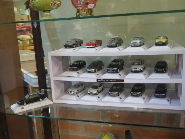 83. Modellbilar 15 st +1 st SAAB bilar på plastställning