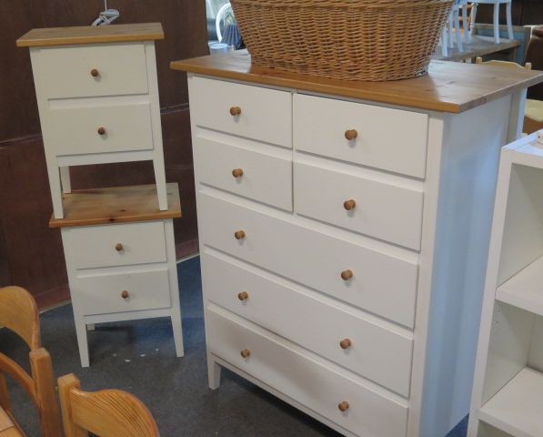 Modern 7 lådig byrå b:100 cm + paret sängskåp