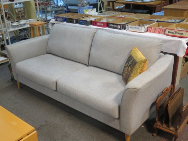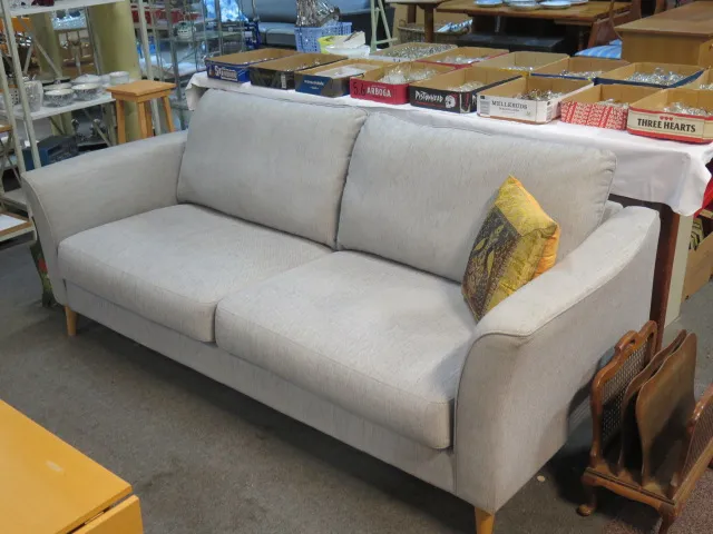 265. Modern textilsoffa 2 sits mjuk pastellfärg l:200 cm