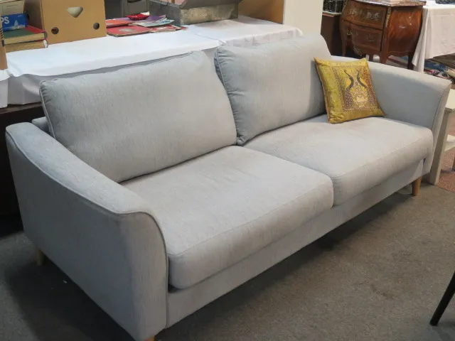 257. Modern textilsoffa 2 sits mjuk pastellfärg l:210 cm