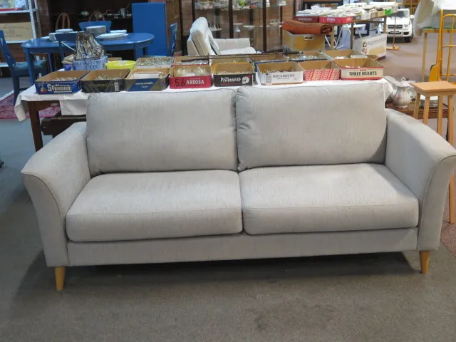 319. Modern textilsoffa 2 sits mjuk pastellfärg l:210 cm