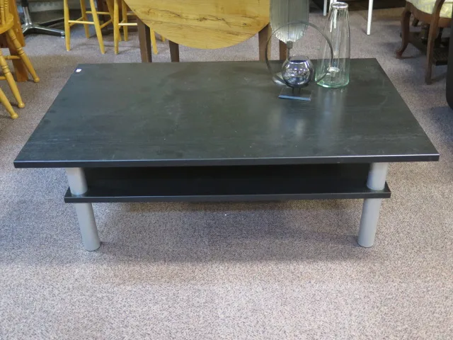 513. Modernt soffborst svart ek m tidningshylla