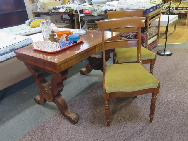 418. Ordensbord Jugend Mahogny l-100 cm samt paret stolar