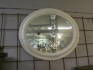 Oval äldre fasettslipad vitmålad spegel.. l-60 cm