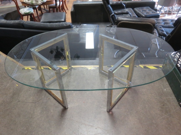 Ovalt glasbord på metallstomme l:140 cm