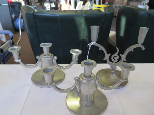 276. Paret 3 armade bordskandellabrar tenn / +2 armad