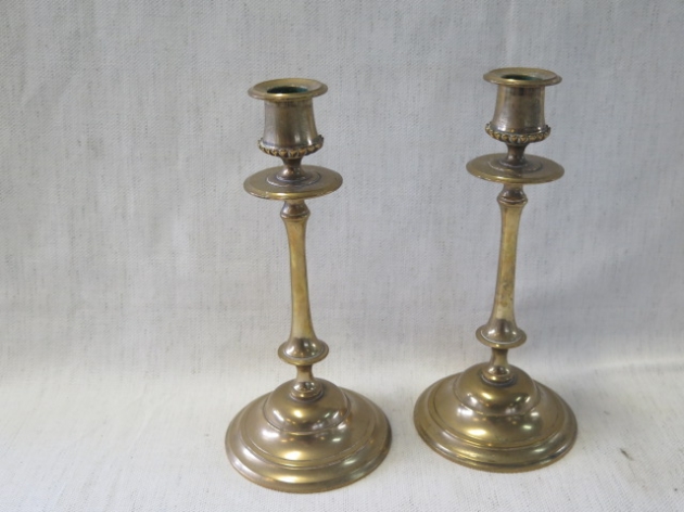 219. Paret ljusstakar mässing 1800-tal h:23 cm
