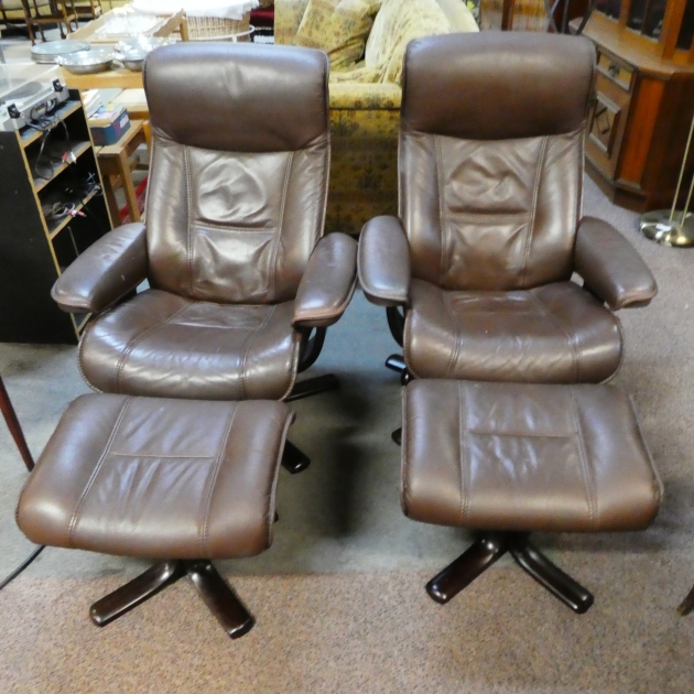 Paret ställningsbara snurrfåtöljer skinn m fotpall