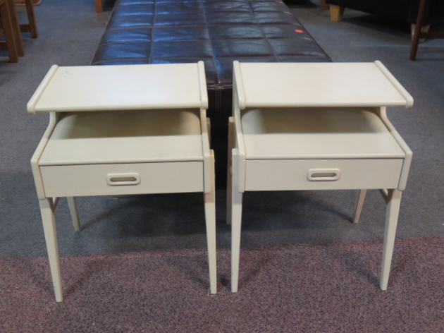 Paret vita sängbord m låda 70-tal