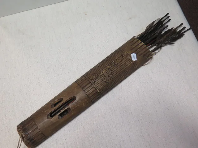 184. Pilkoger i bambu m snidade detaljer pilar m fjädrar