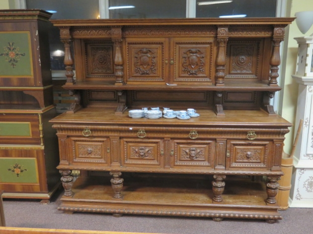 Praktskåp senbarock ek rikt dekorskuret 240x76x215 cm