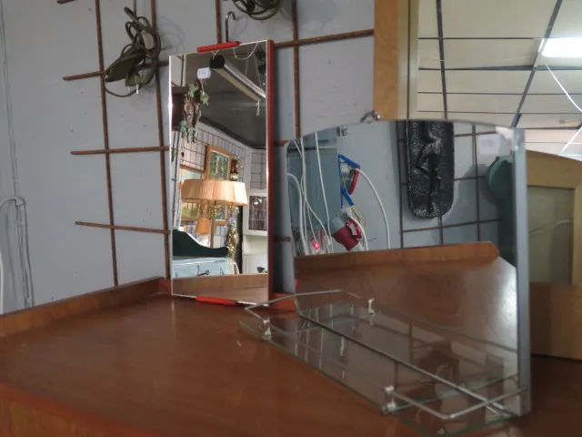 619. Retro väggspegel/toalettspegel b:20-43 cm