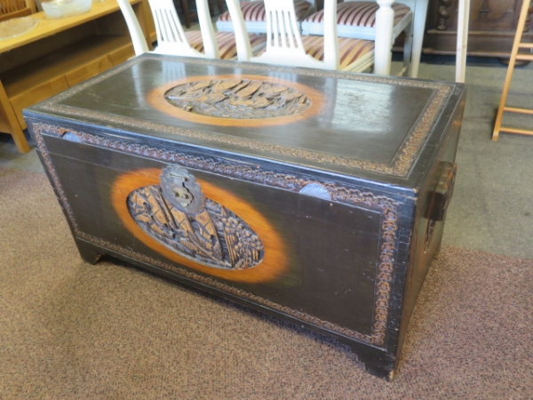 386. Rikt skuren japanskt kamferkista 92x50x35