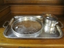 332. Matgrupp träskiva smidestomme bord 4 stolar