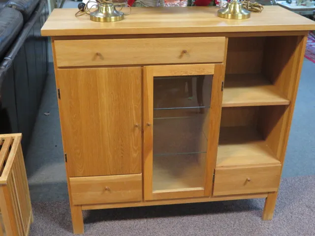 351. Skänkskåp ek 3 lådor vitrindel 106x40x102 cm