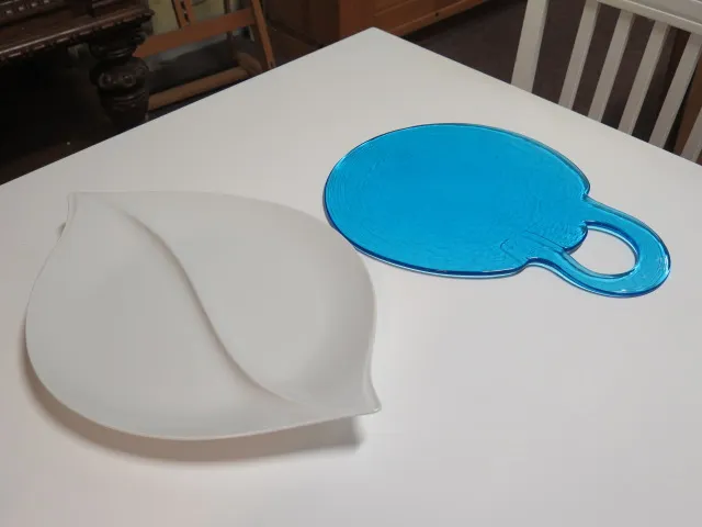 210. Skärbräda glaskonst 70-tal/bjudningsfat