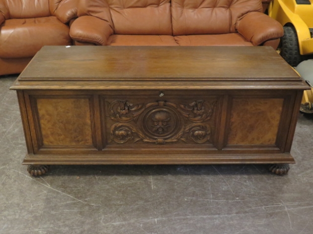 27. Skåp skulpterad ek hyllinredning 130x50x55 cm
