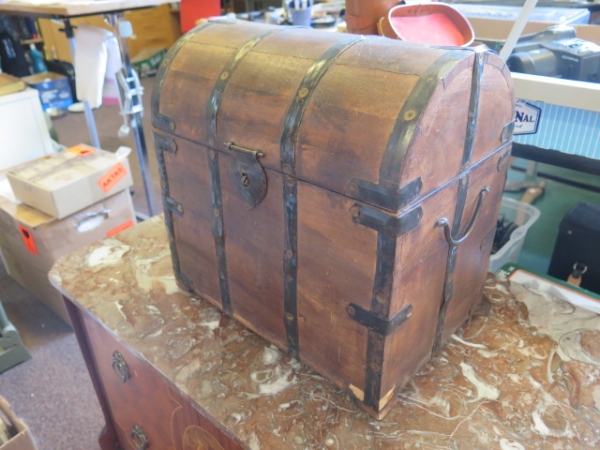 168. Skattkista i äldre stuk för flaskor b:35 cm