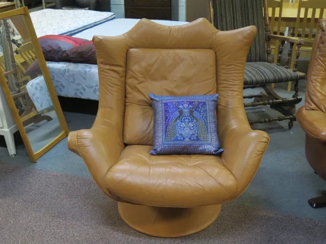 321. Snurrfåtölj skinn m fotpall