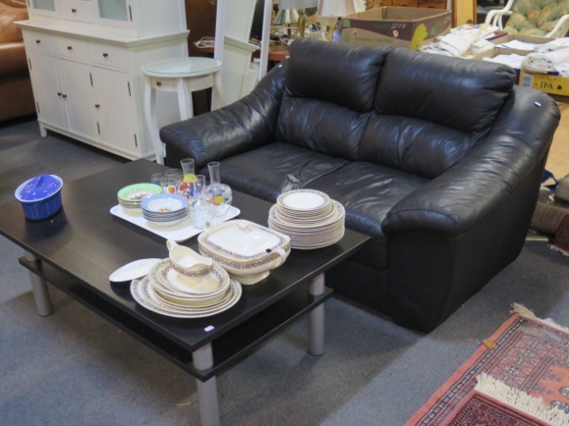 430. Skinnsoffa 2-sits modern m soffbord l-130 cm
