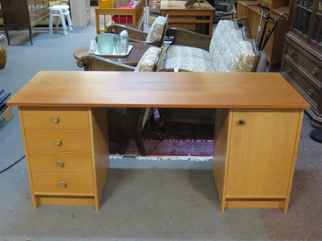 54. Skrivbord teak/ek 4 lådor 148 cm