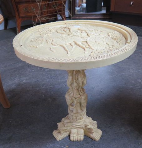 Skulpturerat pelarbord d:45 cm