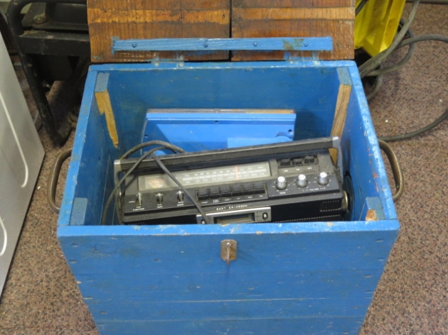 Snickarlåda m innehåll.. radio..arbetsbelysning