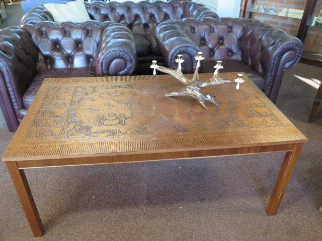 83. Soffbord m världskarta på kopparskiva1970-tal