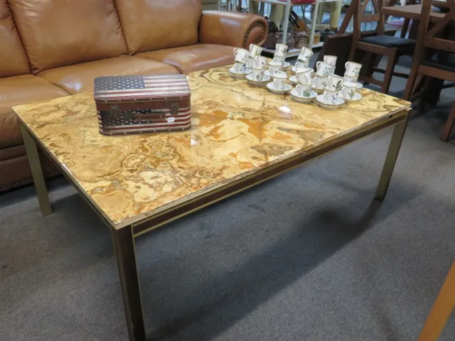 348. Soffbord marmorskiva metallstomme l:140 cm