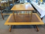 Soffbord teak på hjul koppar relief skiva/ sidobord teak