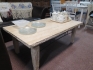 213. Soffbord travertin o smide.. 137x77 cm