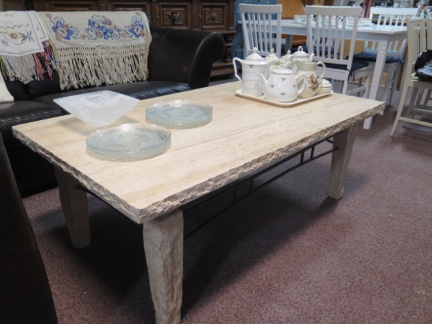Soffbord travertin o smide.. 137x77 cm