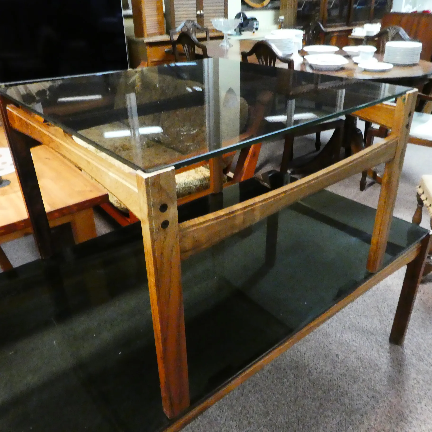 Soffbord/lampbord rökfärgad glasskiva trä underrede l:71-140 cm