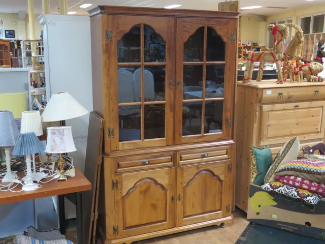 Spröjsat bokskåp 120x46x192 cm.. träpluggade luckor