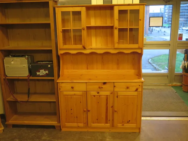 23. Spröjsat vitrinskåp furu.. b-120 cm