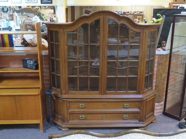 Spröjsat vitrinskåp mahogny 2 lådor 190x195 cm