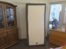 47. Spröjsat vitrinskåp brunbetsad ek.. 166x46x202 cm