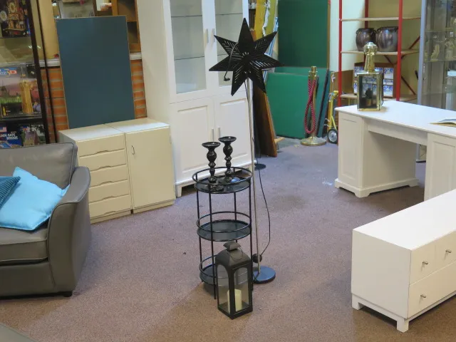 40. Svart plåthylla lykta paret ljusstakar golvlampa