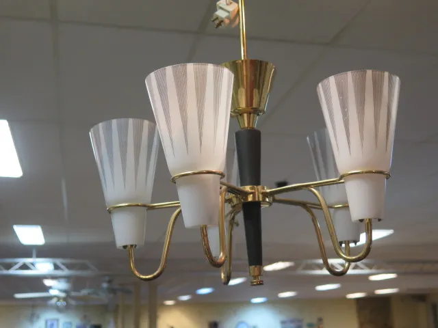 Taklampa 50-talet.. 5-armad mässing.. d-48 cm