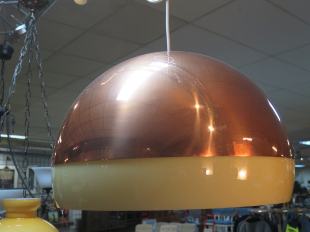 410. Taklampa "Outokumpu" Koppar/akryl.. des. Yki Nummi för Orno.. d-55 cm