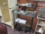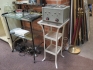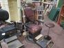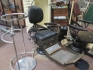 Tandläkarstolar ställbara stoppade rygg och sits, stomme av järn.Värmeaskåp, instrument, taklampa, pall, sidebord, tandläkarbord mm.