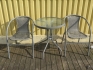 13. Trädgårdsgrupp bord 6 stapelbara stolar