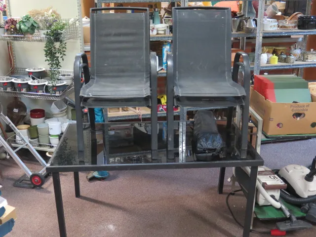 80. Trädgårdsgrupp bord glasskiva 4 stolar